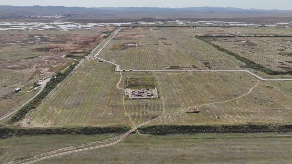 圖為元上都遺址大龍光華嚴寺遺址進行考古發掘全景。新華社發