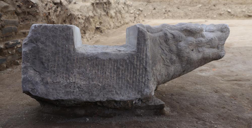 圖為發掘出土的石螭首。新華社發