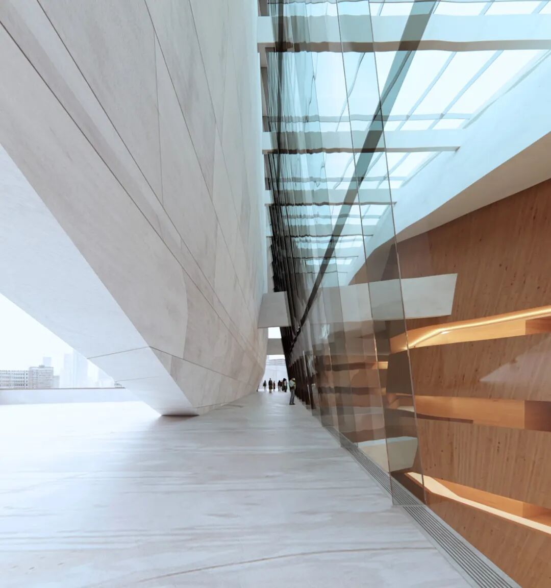 這種材料強度是普通混凝土的數倍,允許實現更大板幅、更薄厚度和更精巧的節點設計,同時其豐富的表面肌理與卓越的自潔性、耐候性,使建筑既能展現文化建筑應有的厚重氣質,又能在細節上經得起近距離品鑒。UHPC板構成的建筑表皮,如同一幅巨大的抽象藝術畫作,隨著光影變化呈現出動態的表情。