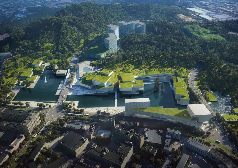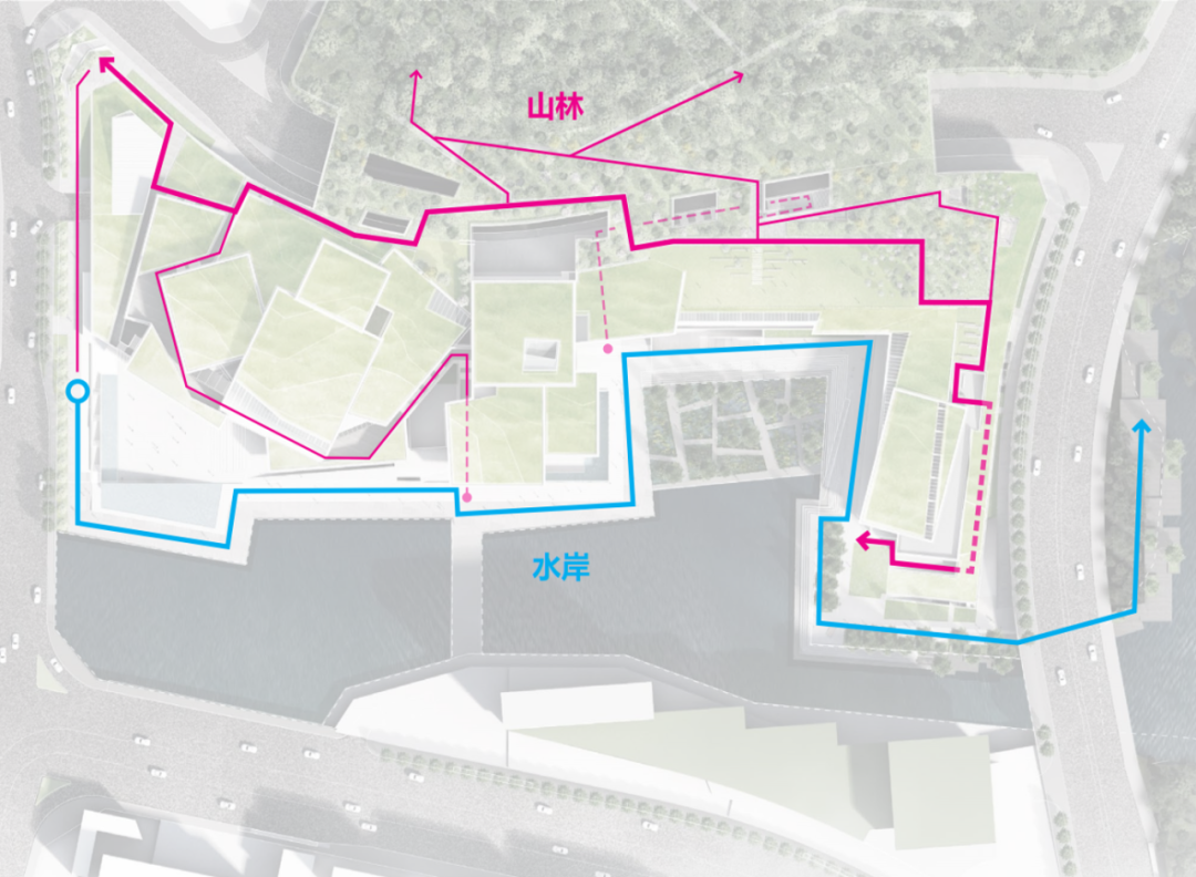 項目基地曾是一處典型的城市斷裂帶——一片介于工業區與自然山地之間的“被遺忘的邊界”。國際設計團隊Studio Link-Arc提出了一個因地制宜的建筑策略:不以地標性構筑物強勢介入,而是以“織補”的姿態,修復城市與自然的聯系。