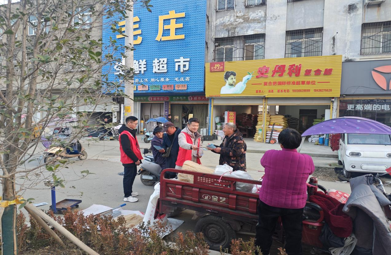 活動現場,街邊懸掛著“識詐防詐進社區 共建平安新毛莊”的紅色主題橫幅,科技志愿者們身穿志愿馬甲,主動走向沿街攤販、過往居民和休憩的老人,逐一發放防電詐宣傳手冊。