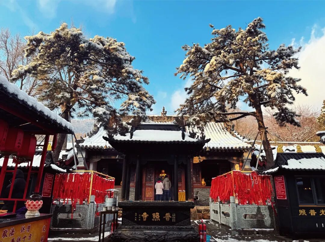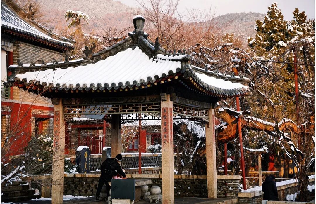雪片似揉碎的云絮,輕輕漫過泰山普照寺的檐角,轉眼便給青灰瓦頂覆上一層薄絨。