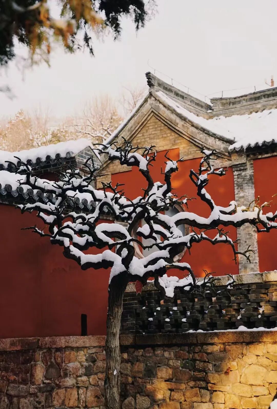 院中的古柏更顯蒼勁,墨綠枝椏間綴滿白雪,像被巧手纏了圈細密的銀絲,風過時,雪粒簌簌落下,沾在石階上,又悄無聲息積成一片素白。