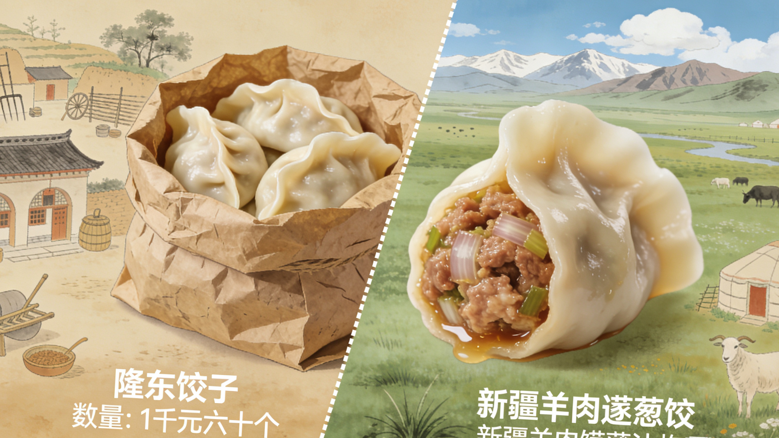 在甘肅隴東老家,餃子是論斤賣的,一斤正好六十個,用裁好的馬糞紙包著,拎在手里沉甸甸的,是鄰里間最實在的口糧;到了新疆,餃子就換成論個賣了。這里物產豐饒,草原上散養的羊肉鮮嫩得不帶一點膻味,剁成細膩的肉泥,拌上脆生生的洋蔥碎,再撒點胡椒粉提味,咬一口汁水四溢,是獨屬于西北的粗獷鮮香。如今日子越過越紅火,冬至的餃子餡也愈發多樣,牛肉芹菜、韭菜雞蛋、蝦仁三鮮輪番上陣,可我總忍不住懷念小時候,母親親手包的核桃蘿卜餃子。那是專屬于童年的味道,藏著母親的掌心溫度,也藏著歲月獨有的清甜。