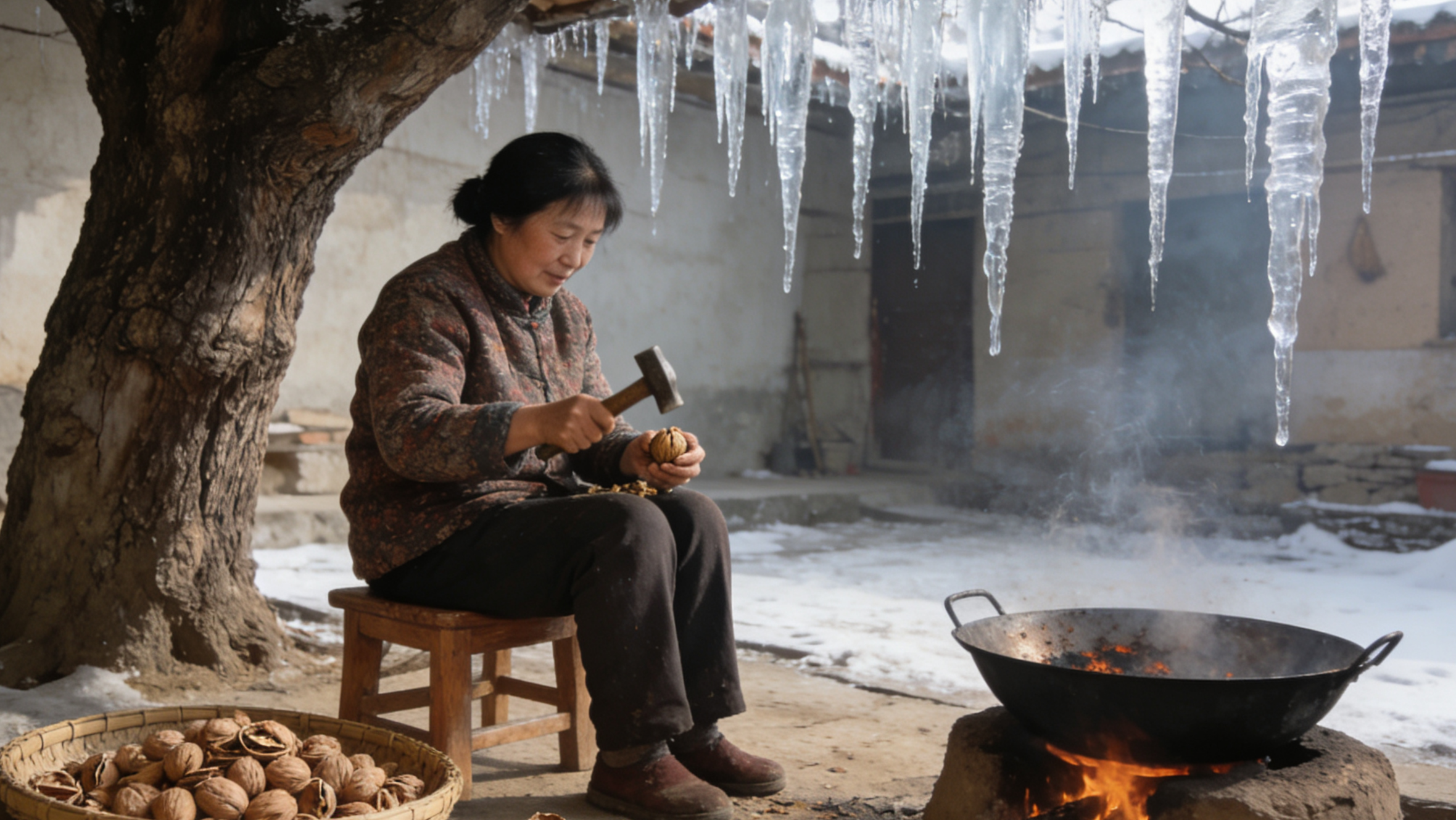 小時候家里日子拮據,屋檐下的冰棱掛得老長,門前那棵老核桃樹,便是我們姐弟幾個冬日里最殷切的念想。冬至前夕,母親會搬個小板凳坐在樹底下,拿著小錘子輕輕敲下曬得干透的核桃,再借著門縫的力道夾開硬邦邦的殼,取出里頭飽滿的核桃仁。鐵鍋燒得溫熱,她把核桃仁倒進去,用小火慢慢焙著,不時用鍋鏟翻攪幾下,直到果仁變得焦黃酥脆,滿院都飄著一股濃郁的焦香。晾涼后,母親把核桃仁細細切碎,再拌上自家腌菜缸里撈出來的脆嫩蘿卜絲,滴幾滴香油,不用多余的調料,就是最勾人的餃子餡。那餃子個頭小巧,捏著簡單的褶子,煮好后咬一口,核桃的酥香混著蘿卜的清甜在嘴里散開,我能一口氣吃下三十個,肚皮撐得圓滾滾的,連鼻尖都沁著細密的汗,心里卻暖烘烘的。