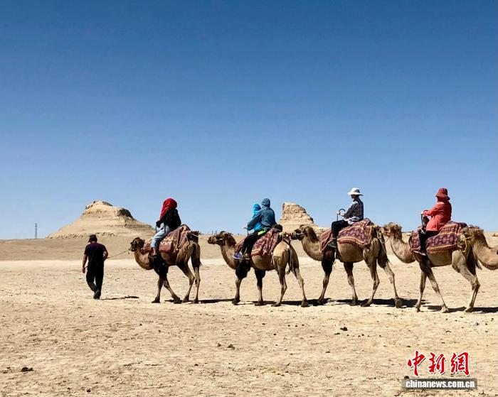 資料圖:中國青海一處戈壁上,游客體驗騎行駱駝。中新網記者 孫自法 攝