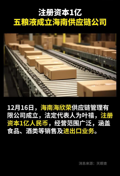 五糧液在海南成立供應鏈管理公司 注冊資本1億