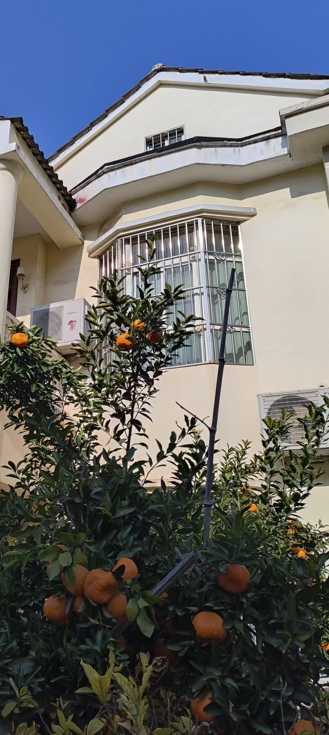 光陰似箭,日月如梭,轉(zhuǎn)眼又幾年過(guò)去了。今年春天,一場(chǎng)大風(fēng)席卷而來(lái)。清晨推窗一看,院子里滿地都是被吹落的花瓣。我們以為今年結(jié)不了多少果了。誰(shuí)知道剩下的花骨朵兒更壯實(shí)。果然,入夏時(shí),枝頭竟掛滿青果,比往年更密。五、六月份大旱,我們就經(jīng)常施肥澆水。秋風(fēng)起時(shí),橘子樹(shù)徹底成了院子里的明星。金黃的果實(shí)挨挨擠擠,把枝椏壓得低低的,我們不得不用竹竿撐著樹(shù)枝。孩子們回來(lái)時(shí),總要先摘一顆橘子品嘗,酸甜可口,沁人心脾。我們還留了最飽滿的幾筐,分送給親朋好友和鄰居們。