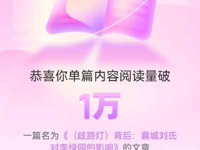 頂端傳來好消息:我的四篇拙作單篇閱讀量都破一萬。恭謝各位師友