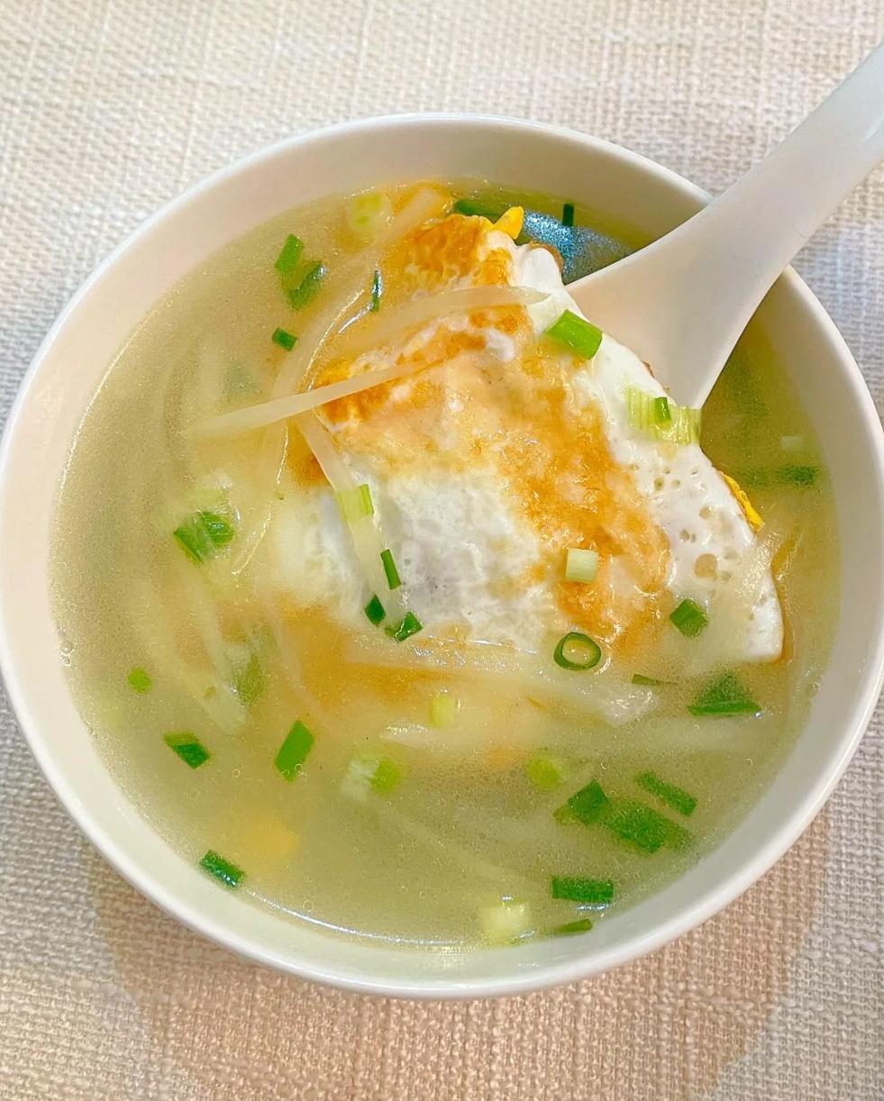 第一道:蘿卜絲煎荷包蛋湯——十分鐘的“暖心熨斗”