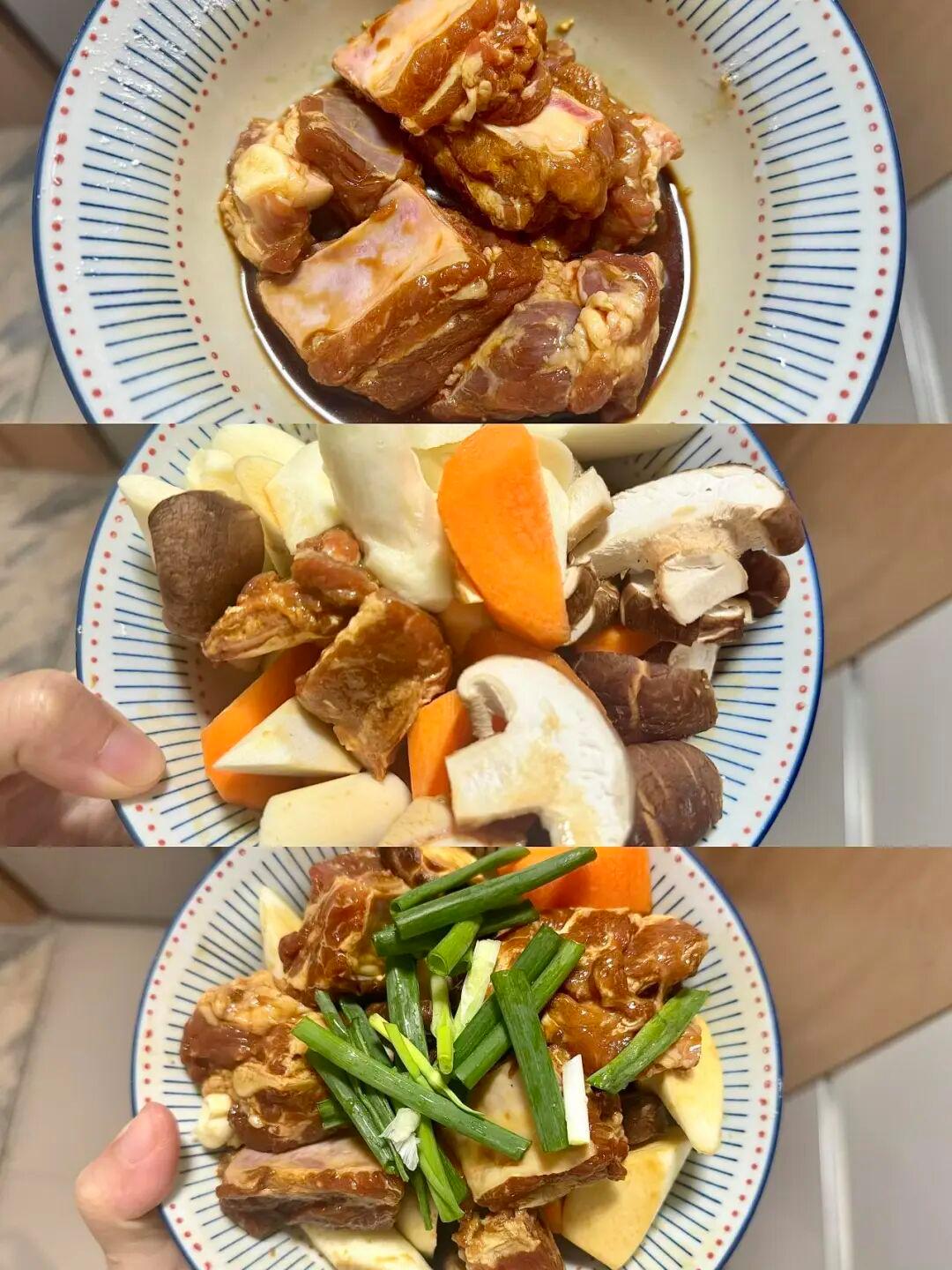 排骨、茭白、胡蘿卜、香菇、蔥花
