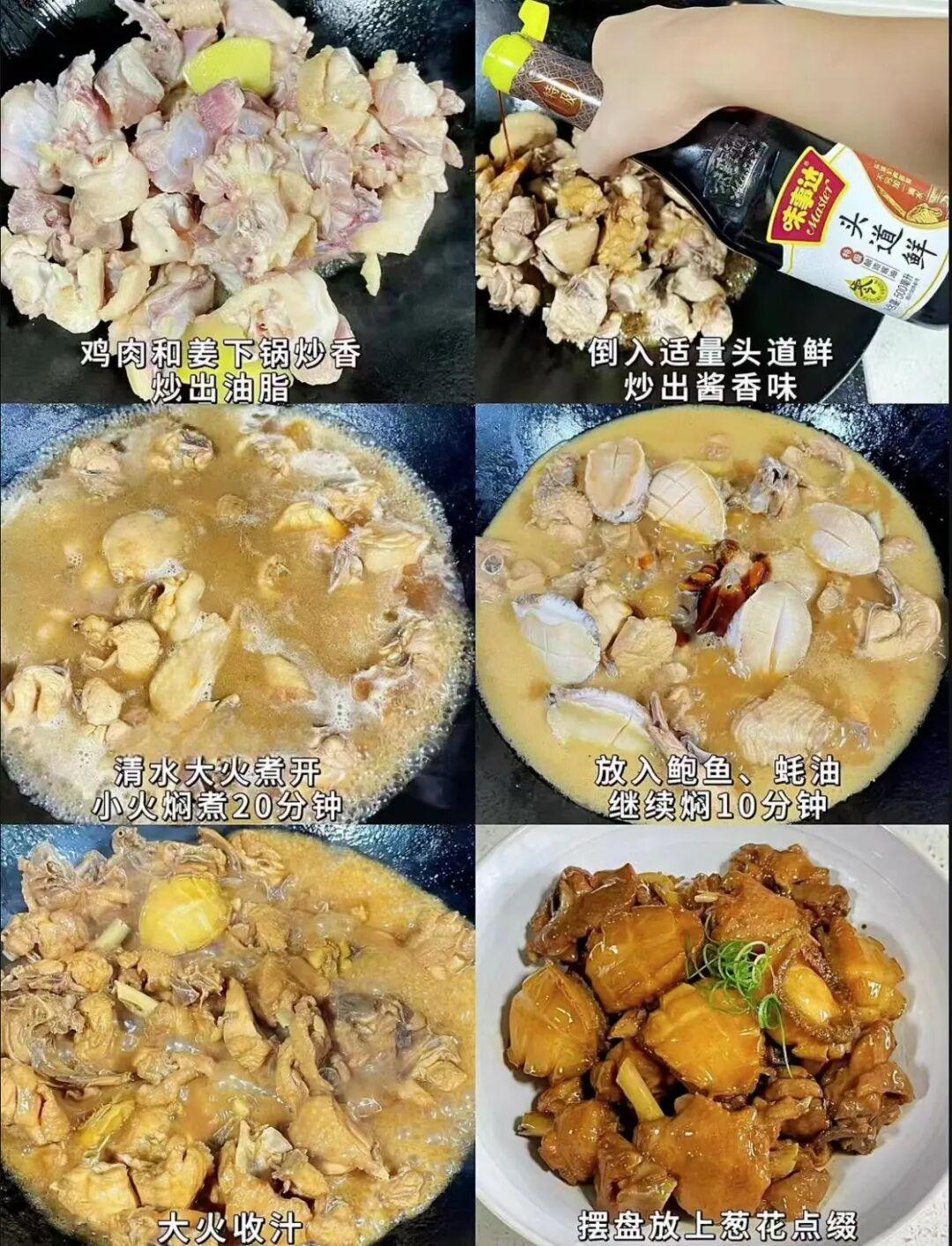 3??、放入鮑魚、蠔油繼續(xù)燜10分鐘,擺盤放上蔥花點(diǎn)綴即可。