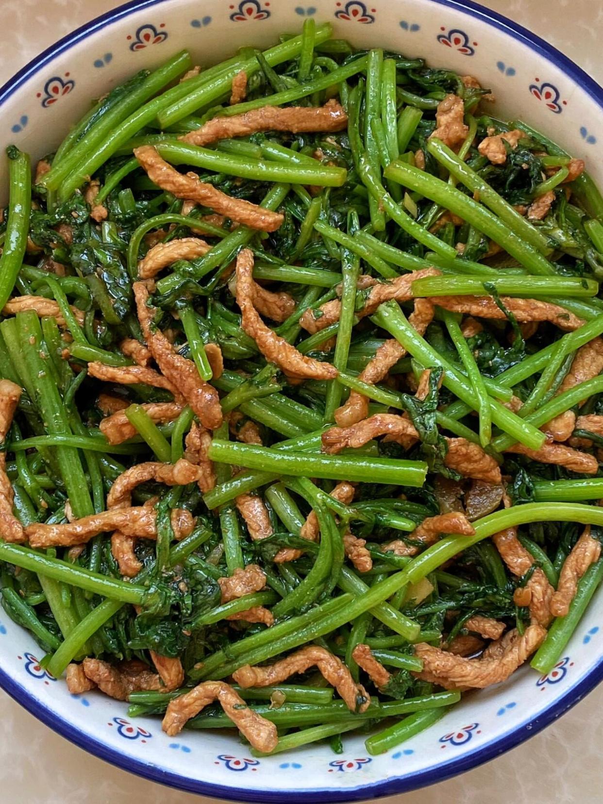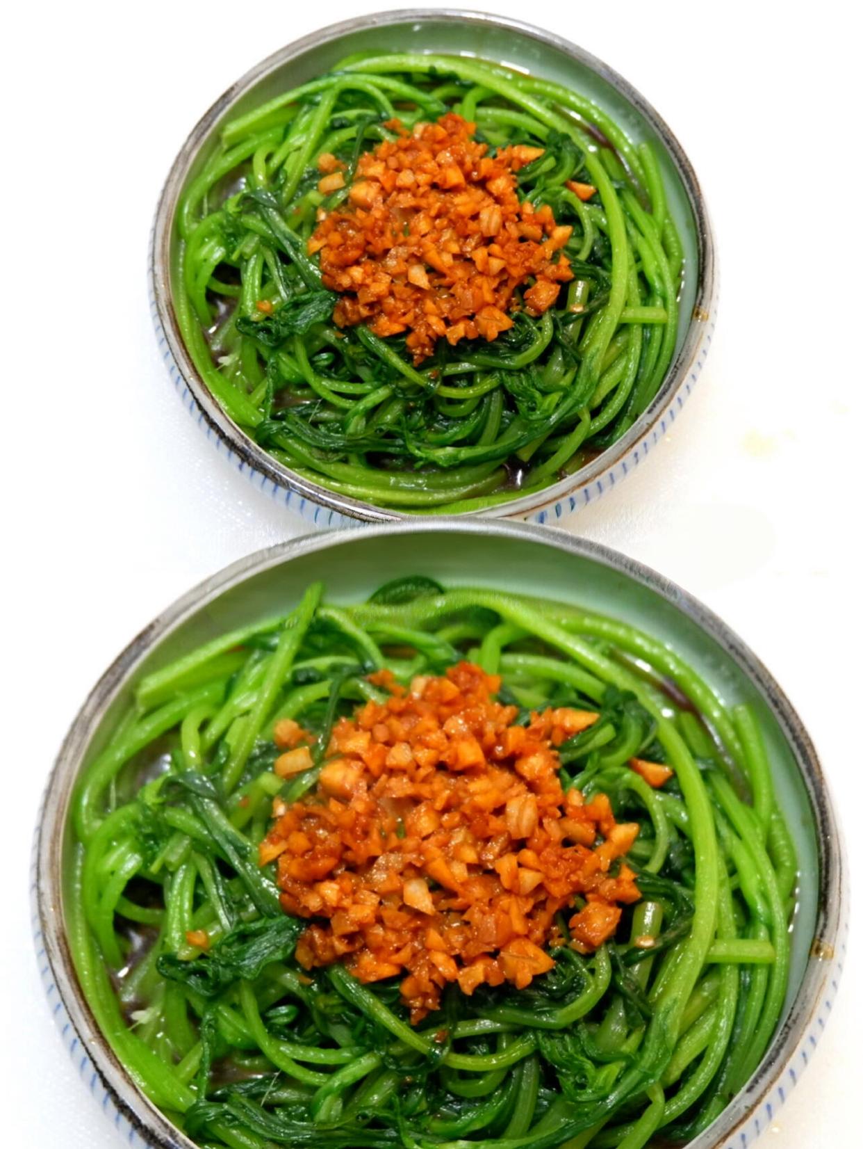 白灼是最能保留茼蒿營養的做法,脆嫩爽口,解膩又化痰,配米飯、配粥都合適。