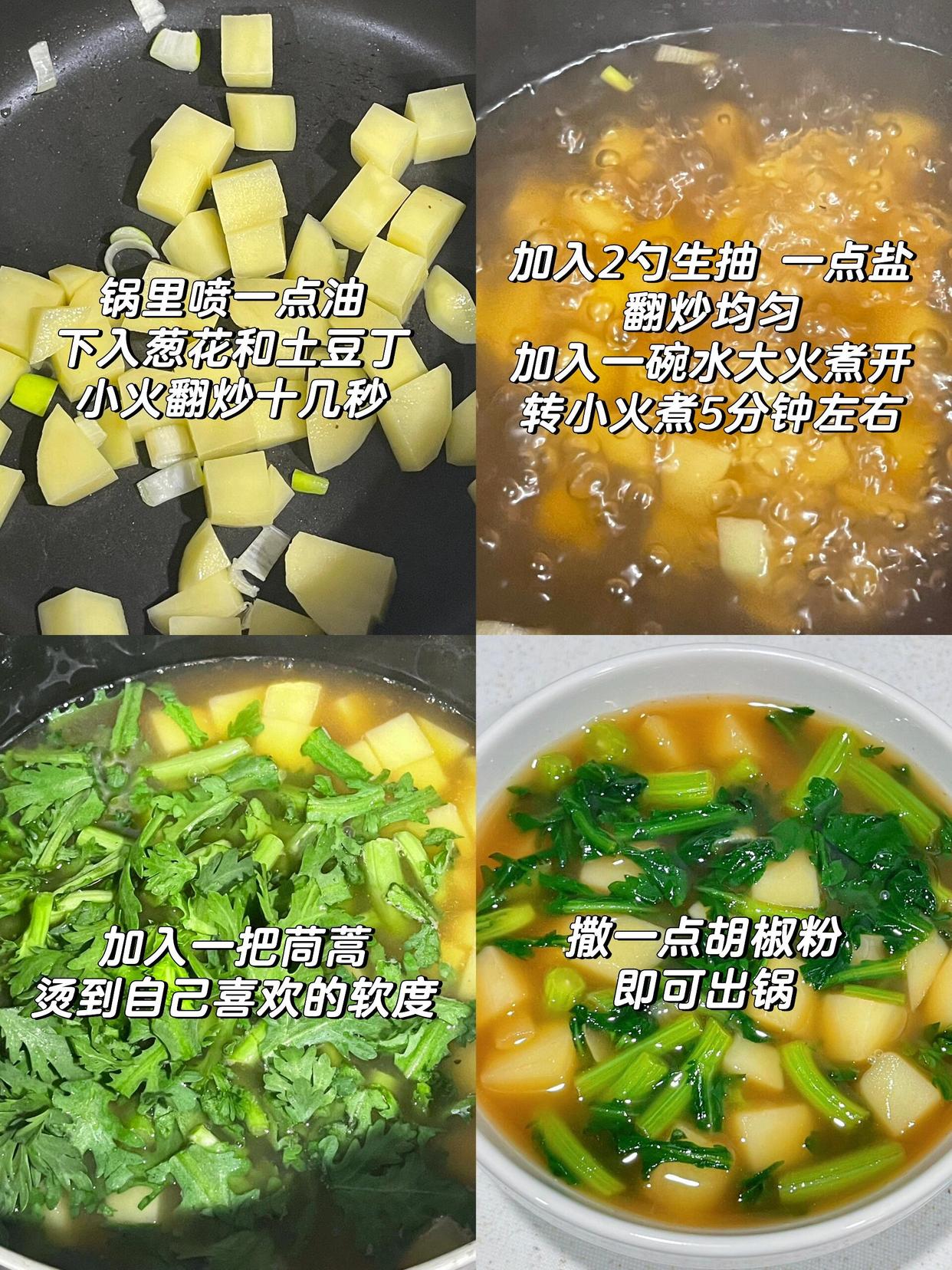 這款湯清淡鮮香,土豆的綿密搭配茼蒿的脆嫩,喝著暖心又潤喉,尤其適合老人和孩子。