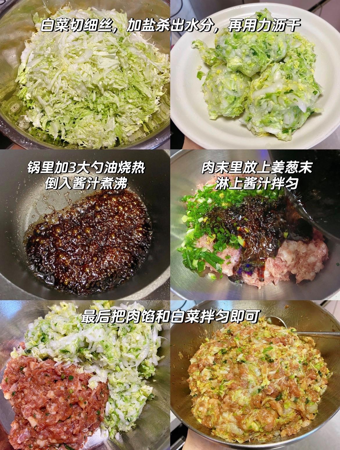 白菜 半顆、豬肉末 300克、姜末 1大勺、蔥花 2大勺、食用油 3大勺、餃子皮 適量