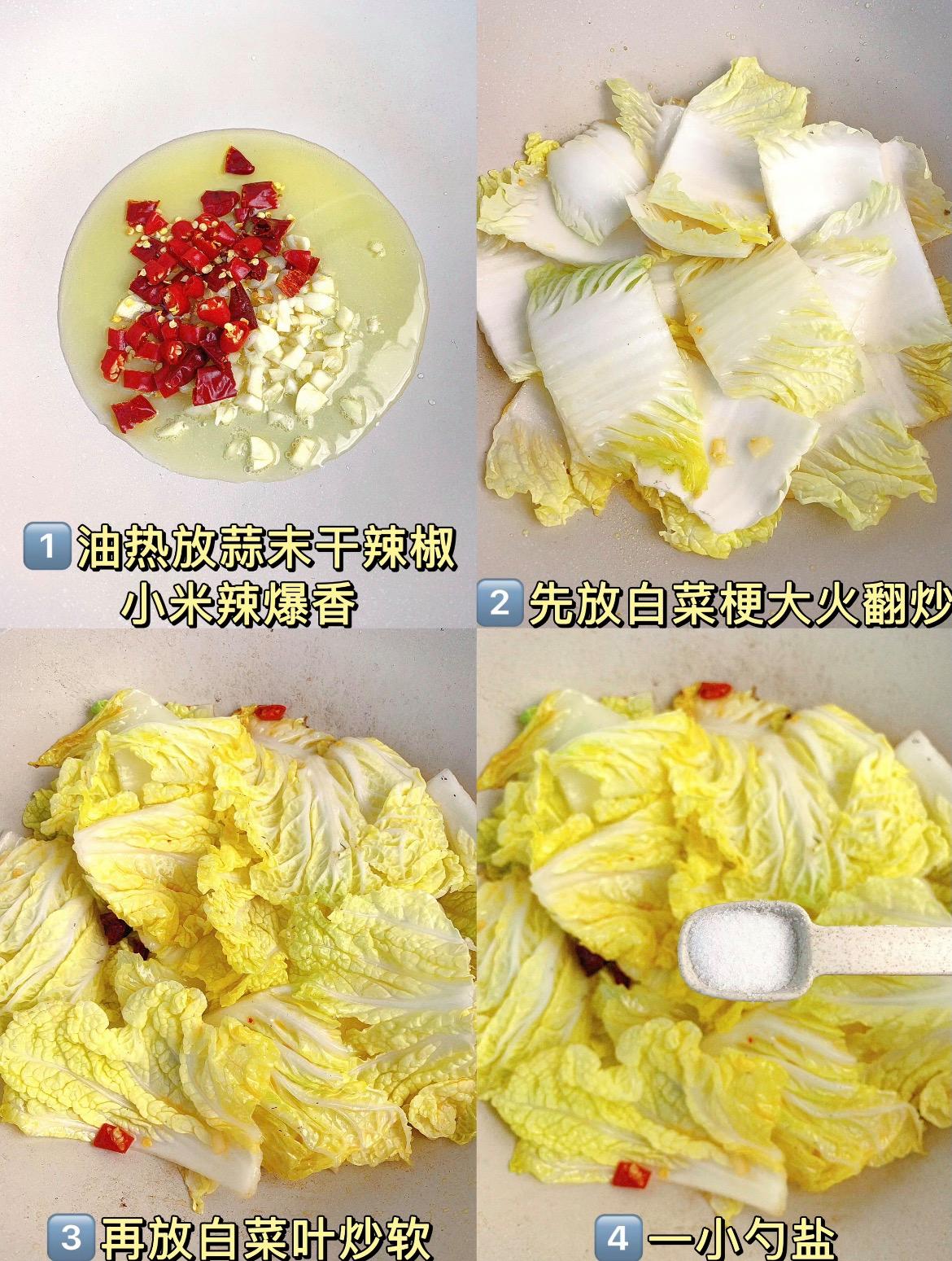 白菜 半棵、大蒜 3瓣、干辣椒 3-4個、小米辣 1-2個、食用油 適量、鹽 1小勺