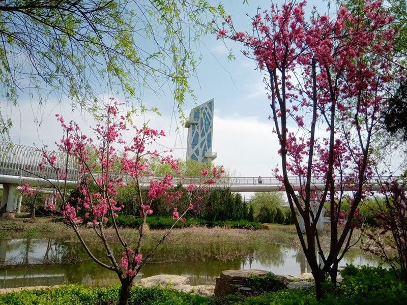 閑看夾岸草木綠菜花黃 桃李競芬芳