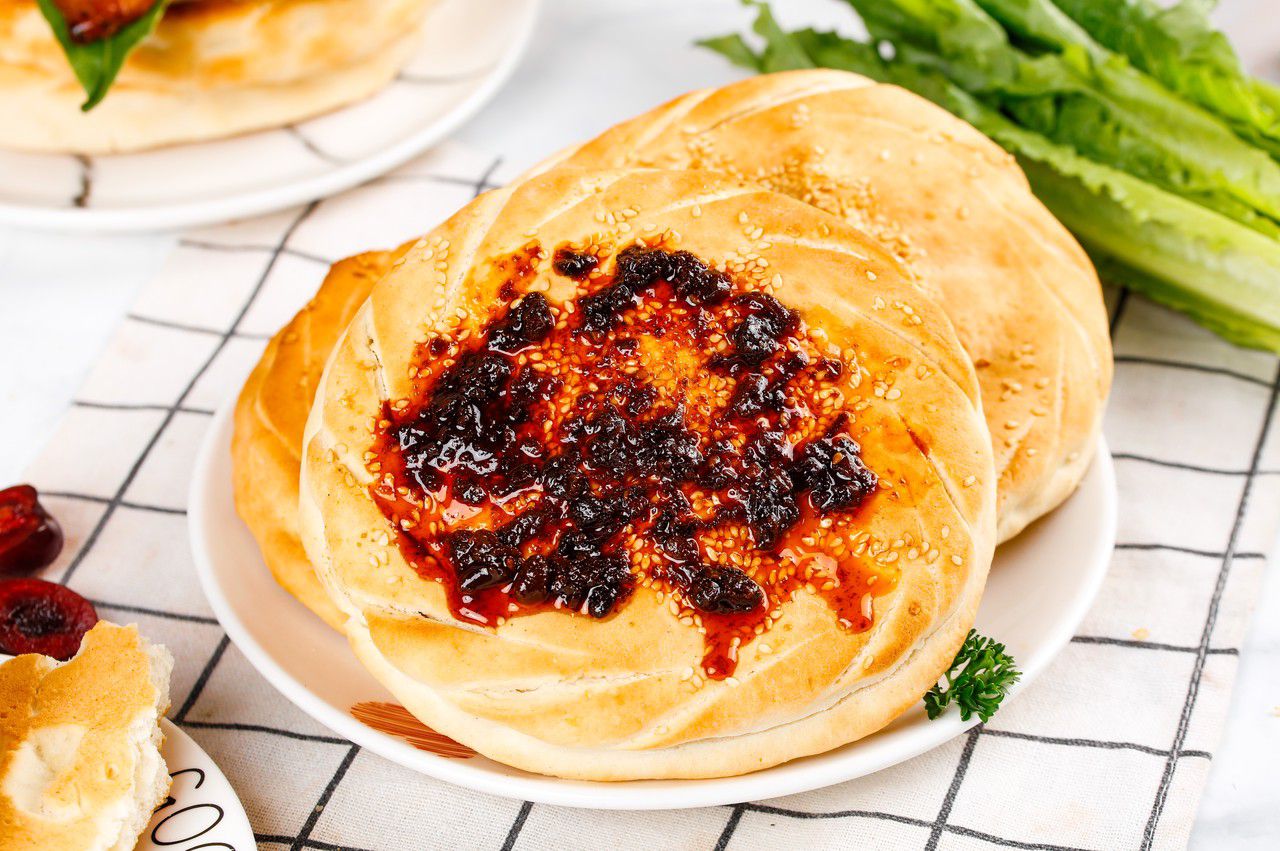 - 吊爐燒餅:起源于北宋,勝于明清。餅狀圓如月,外酥里軟,餅皮金黃酥脆,上面灑滿芝麻。常與牛肉搭配,將牛肉薄片夾入燒餅,被稱為“蛤蟆吞泥”。?