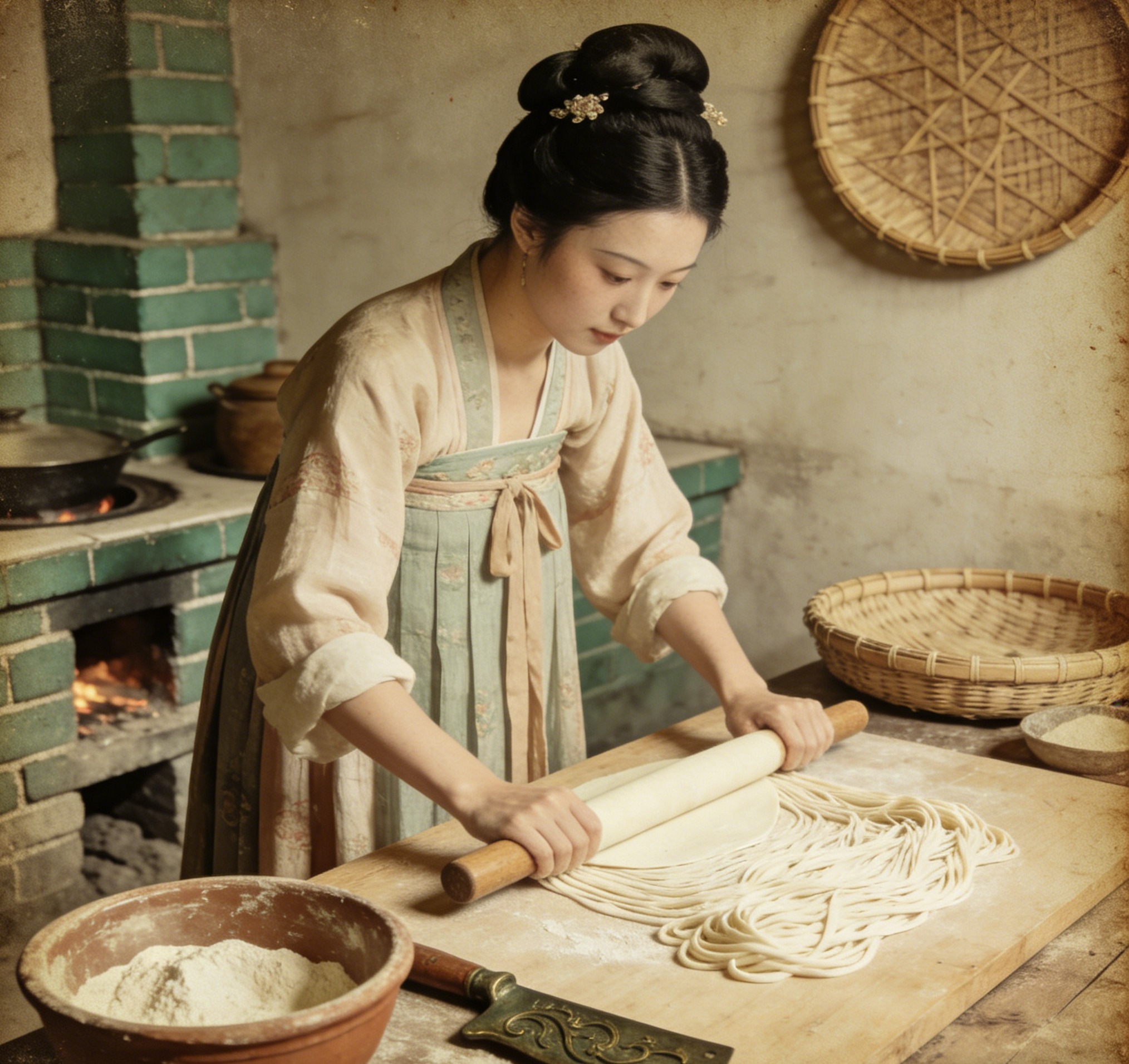新野板面的起源可追溯至三國時期,相傳與蜀漢名將張飛有著不解之緣。據史料記載,東漢末年,張飛屯兵新野,每日操練士兵,耗費大量體力,急需飽腹感強、制作快捷的食物。當時軍中伙夫為滿足需求,嘗試將面粉加水揉成硬面團,用搟面杖搟成寬面,再用手拉扯至薄厚均勻,放入沸水中煮熟后,搭配以羊肉、辣椒、花椒等香料熬制的湯汁,口感筋道、鮮香過癮,深受士兵喜愛,這便是新野板面的雛形。