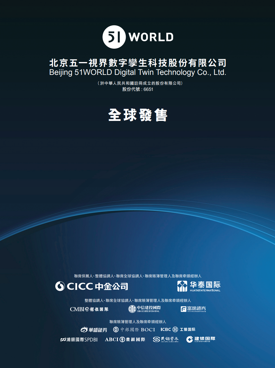 根據弗若斯特沙利文的資料,五一視界為一家在中國數字孿生行業享負盛名的科技公司,在下列科技公司關鍵指標中排名第一:公司為數字孿生行業內首家提出并持續實施地球克隆計劃附注的公司;于2024年中國數字孿生行業中收入排名第一;截至2024年12月31日,公司于中國數字孿生解決方案市場的融資金額排名第一;公司為中國數字孿生行業首家實現一年內收入超2.5億港元的公司;公司為中國數字孿生行業唯一一家能夠提供全面的數字孿生解決方案的公司;