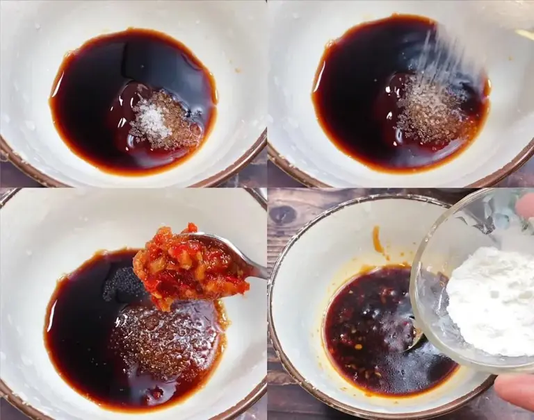 1、先調個秘制的紅燒醬汁。找個小碗,往里面倒一勺生抽,再來一勺蠔油,抓上 3 克鹽放進去,半勺白砂糖提提鮮,再來上一勺辣椒醬,喜歡辣的可以多放點,最后加上一勺淀粉,再倒上兩勺清水,用筷子把它們攪勻了。這醬汁就算調好了,就等著給帶魚上色增味呢!