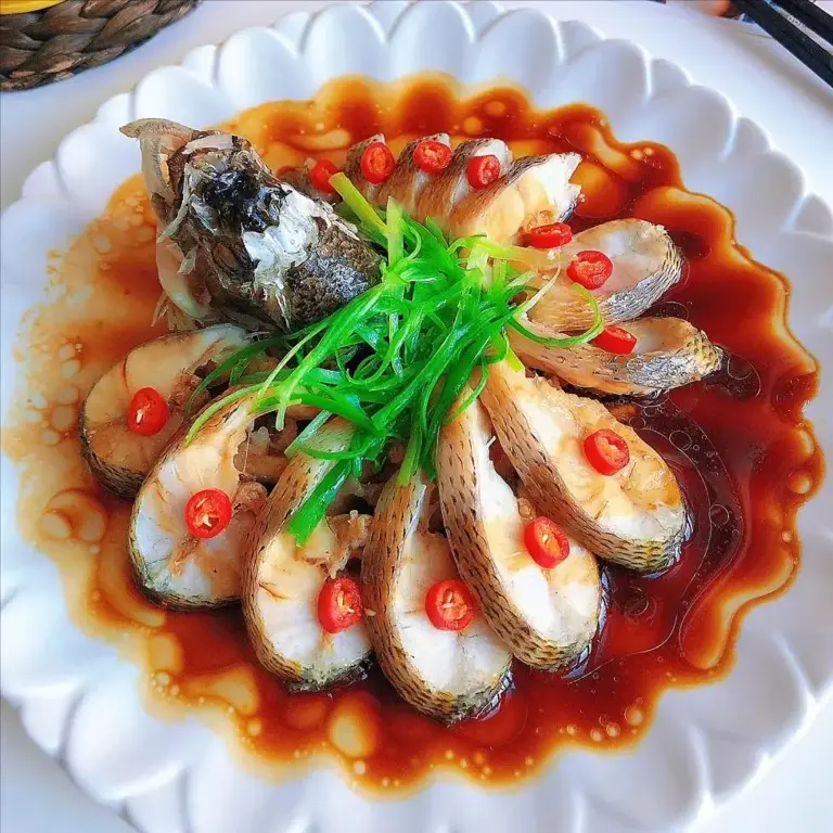 這道蔥油黑魚片就大功告成啦!你看,這魚片鮮嫩多汁,上面還淋著香噴噴的熱油,光是看著就已經讓人食欲大增了。