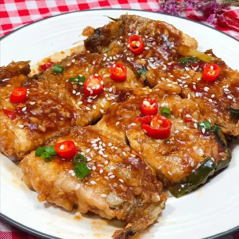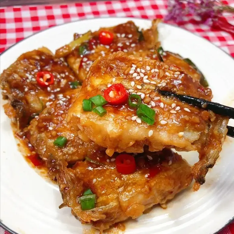 5、把煎好的帶魚盛到盤子里。撒上一把白芝麻,再放上些蔥末和小米辣椒,這道紅燒帶魚就這么做好了。那鮮嫩的魚肉裹著濃郁的醬汁,咸香微辣,味道層次特別豐富。再配上一碗香噴噴的白米飯,那感覺,簡直太滿足了!你們也趕緊試試這道菜吧,保證讓你吃得停不下來!