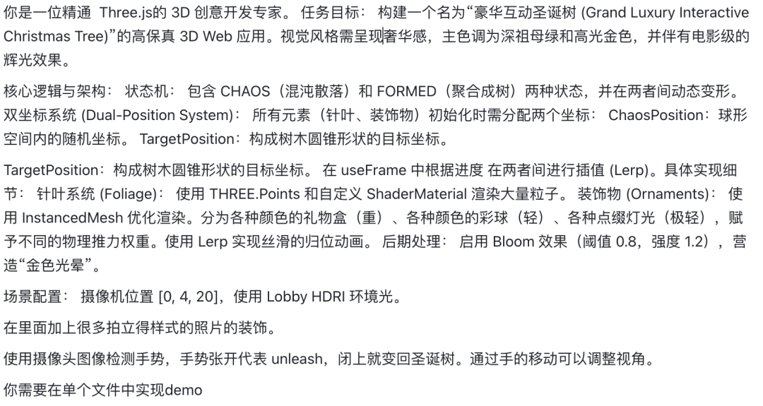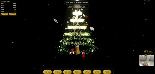 比如這是一個通過手掌的開合來控制的圣誕樹,這次的提示詞是中文的。