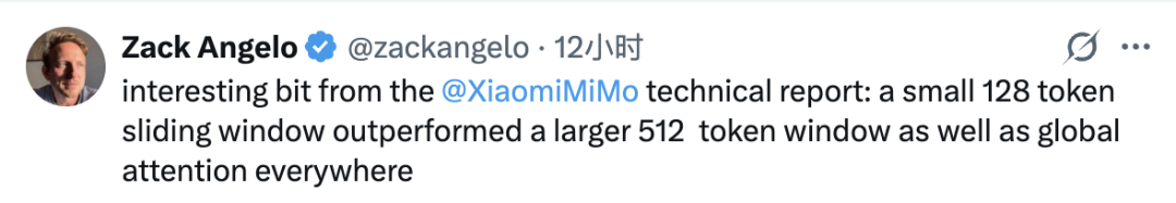 有細致的網(wǎng)友從技術(shù)報告中發(fā)現(xiàn),小米的滑動窗口大小只有128k,但效果比512k的大窗口還要好。