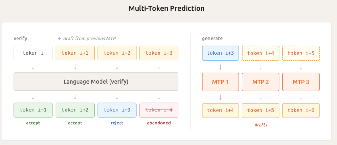 MTP多層Token預(yù)測,前向預(yù)測多個后續(xù)Token,實現(xiàn)最高2.6倍推理加速;