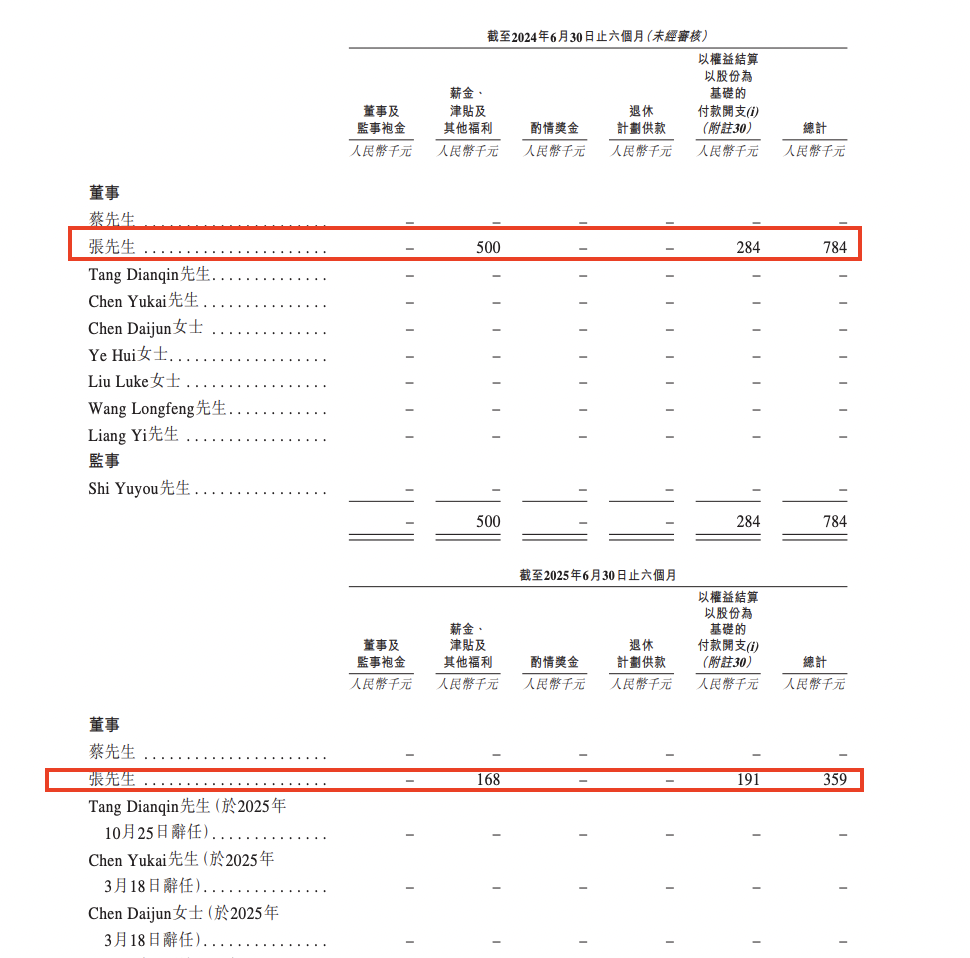 2025年上半年,張建平薪金、津貼及其他福利為16.8萬元,較上年同期減少33.2萬元,降幅66.4%。