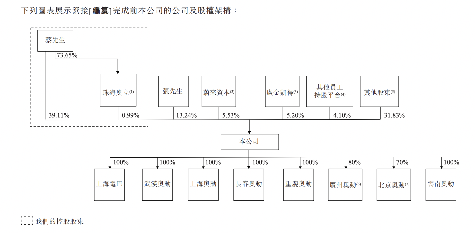 遞表前,奧動新能源由蔡東青直接擁有約39.11%及由珠海奧立直接擁有約0.99%,珠海奧立為公司的員工持股平臺之一,由蔡東青作為唯一普通合伙人控制。蔡東青及珠海奧立為公司的控股股東。