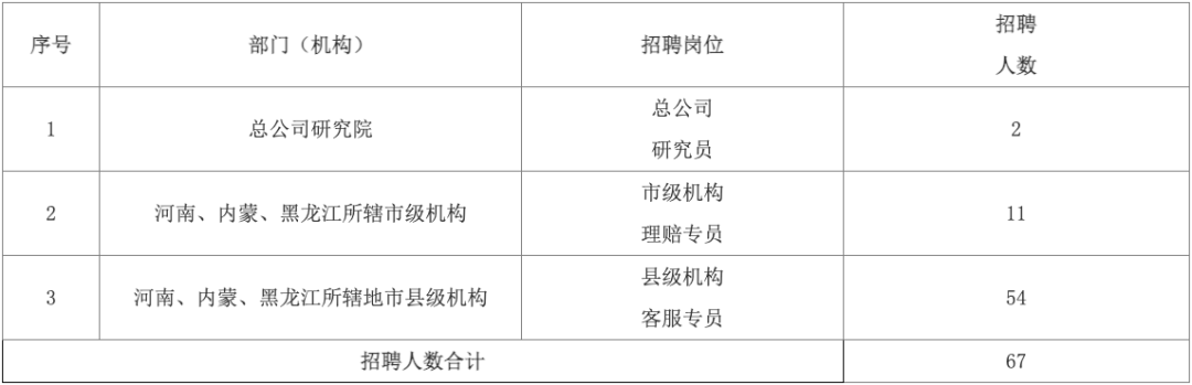 崗位詳情見附件《中原農(nóng)業(yè)保險股份有限公司招聘崗位及要求》(文末可下載)。