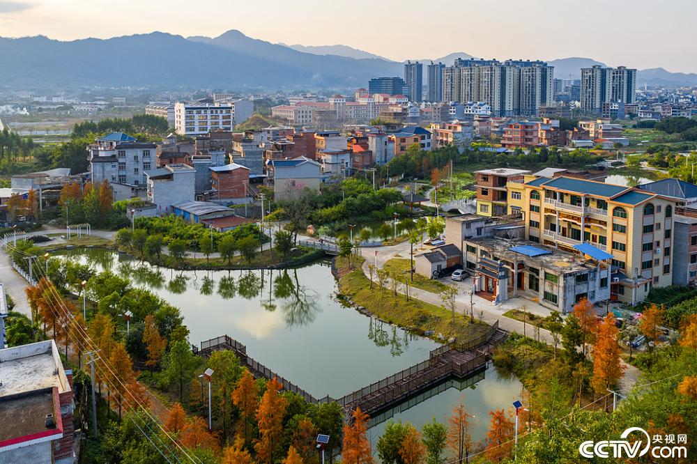 2025年12月17日,廣西梧州市蒙山縣蒙山鎮回龍村田廠組醉蘭湖公園,夕陽將紅色的水杉、水松等樹木映照得色彩斑斕,與湖泊、民居、步道互相映襯,一幅秀美的鄉村畫卷躍入眼簾。視覺中國