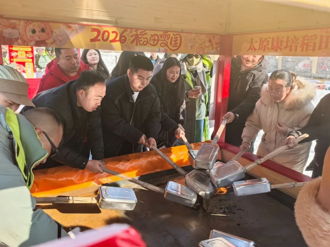 今年園區(qū)特別打造了互動(dòng)體驗(yàn)區(qū)。在這里,人們可以親手制作雪地美食:用長(zhǎng)長(zhǎng)的叉子烤出焦香微甜的棉花糖,將玉米粒裝入鋁制飯盒,放在火上一邊烤一邊聽著玉米在盒中“噼啪”炸開,或是耐心等待炭火上的面包片變得金黃酥脆。這些親手完成的冬日美味,別有一番風(fēng)味。