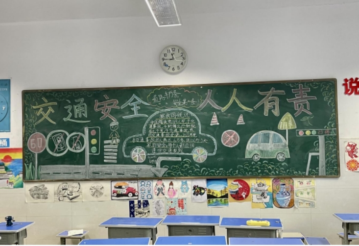 視聽浸潤,多維宣傳營氛圍。充分發(fā)揮校園各類宣傳載體的陣地作用,營造“抬頭可見、駐足可聽”的濃厚氛圍。電子顯示屏滾動播放“一盔一帶、安全常在”朗朗上口的宣傳標(biāo)語與生動警示短片,在師生每日必經(jīng)之處強(qiáng)化視覺提醒。校園廣播站開設(shè)“平安上學(xué)路”專題欄目,定時(shí)播報(bào)安全知識、法規(guī)解讀及溫馨提示,讓安全之聲回蕩校園。同時(shí),精心繪制主題黑板報(bào),以童趣的畫筆圖解交通標(biāo)志、宣傳安全常識,打造班級內(nèi)“會說話”的安全文化墻。