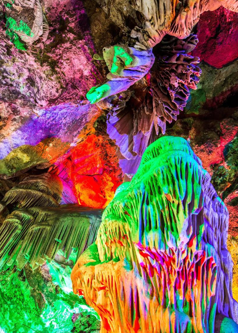 玉柱擎天,石瀑垂簾,疊幃輕垂