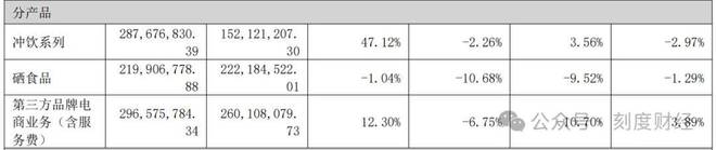 值得一提的是,公司綜合毛利率雖未公開披露,但從細分業(yè)務來看,2025年中報顯示,占比23.7%的硒食品業(yè)務毛利率為-1.04%,而占比超三成的第三方品牌電商業(yè)務,毛利率僅12.30%,遠低于沖飲食品47.12%的毛利水平。