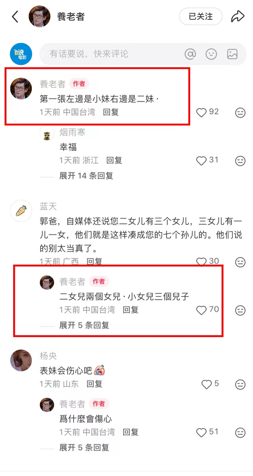 第三張照片是表妹,不是親姐妹,網友說表妹會傷心,郭爸爸表示不理解,為什么傷心,網友可能認為表妹顏值不高。