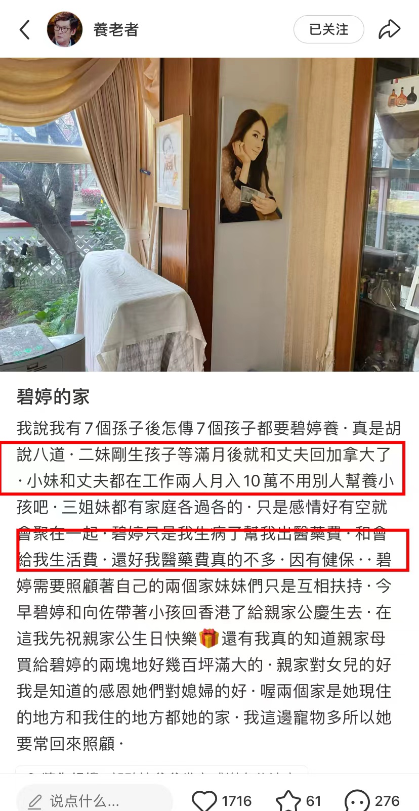 郭爸爸年紀大了,也是需要被照顧,郭碧婷付出很多,也是應該的吧,畢竟她是大女兒。