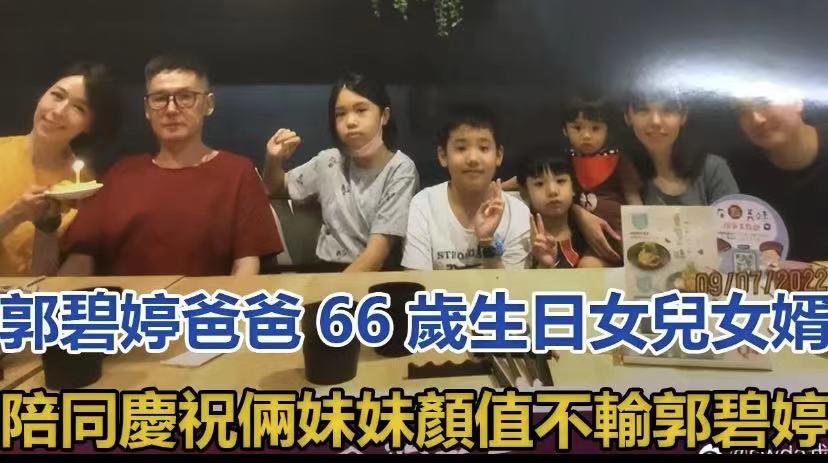 這是媒體報道的照片,二女兒和小女兒以及女婿們,還有四個孫子孫女,加上二女兒剛生的女兒,就是五個,郭碧婷一家沒有被拍到。兩姐妹顏值真的不輸姐姐,所以大家不要亂傳。