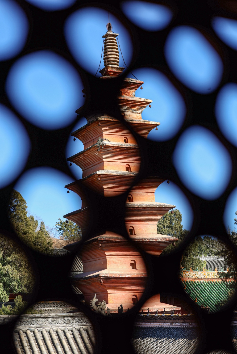 從懸鐘閣窗口眺望七祖塔。