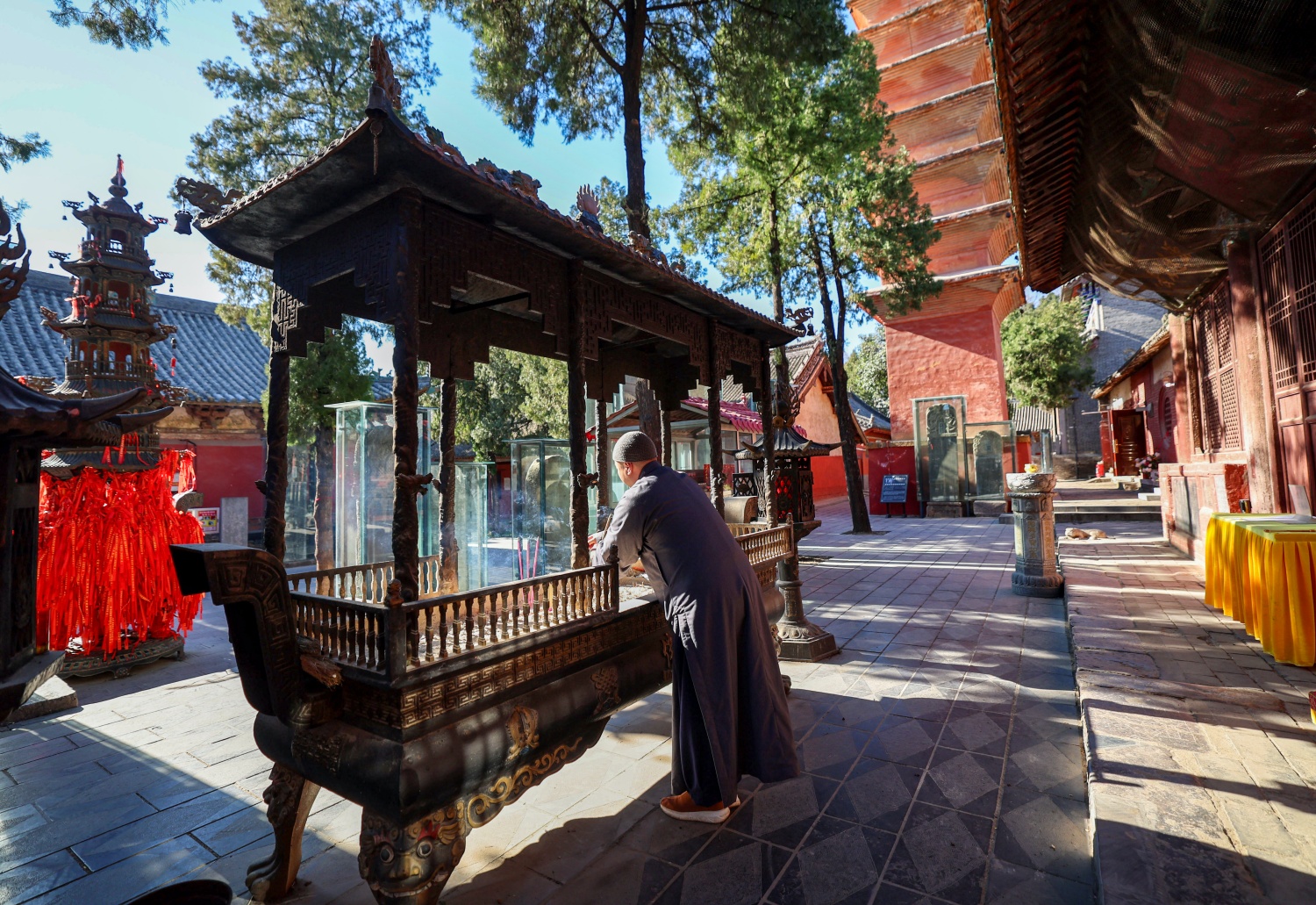 僧人在整理香爐。