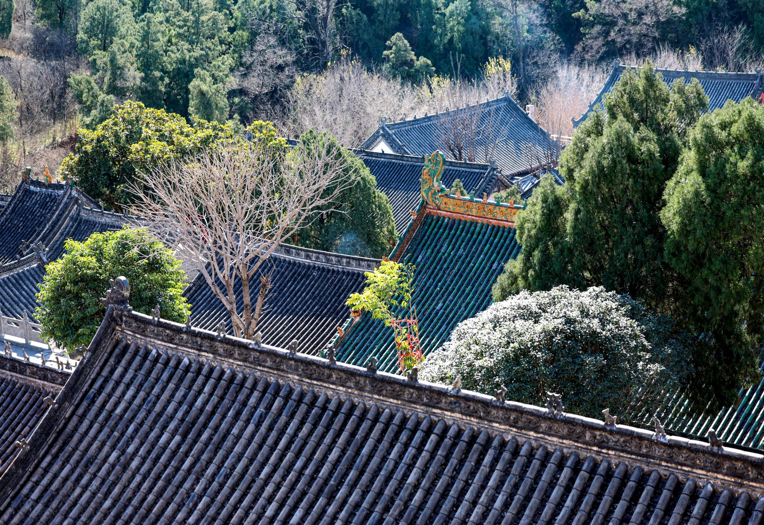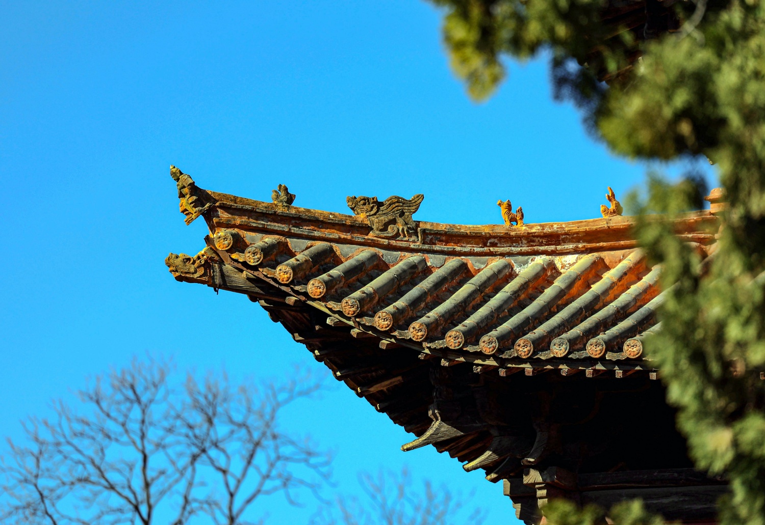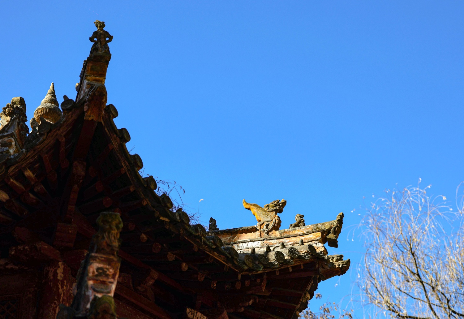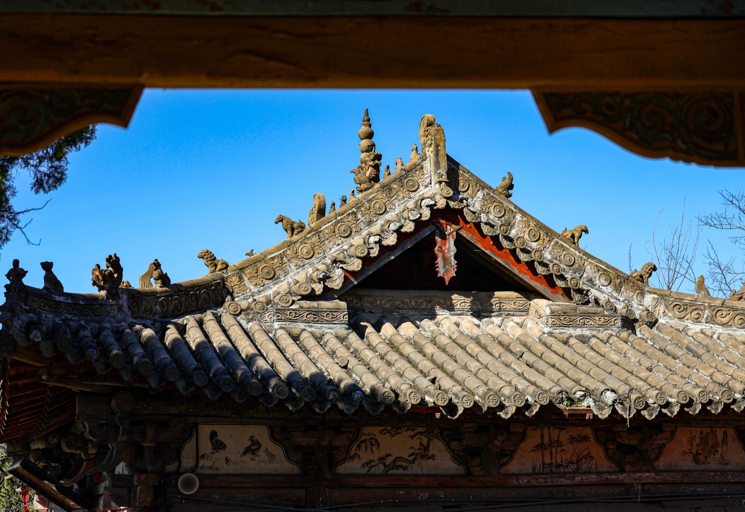 風穴寺屋頂裝飾以傳統脊獸為主,造型精美,既具防火避邪寓意,又彰顯古代建筑工藝之美。