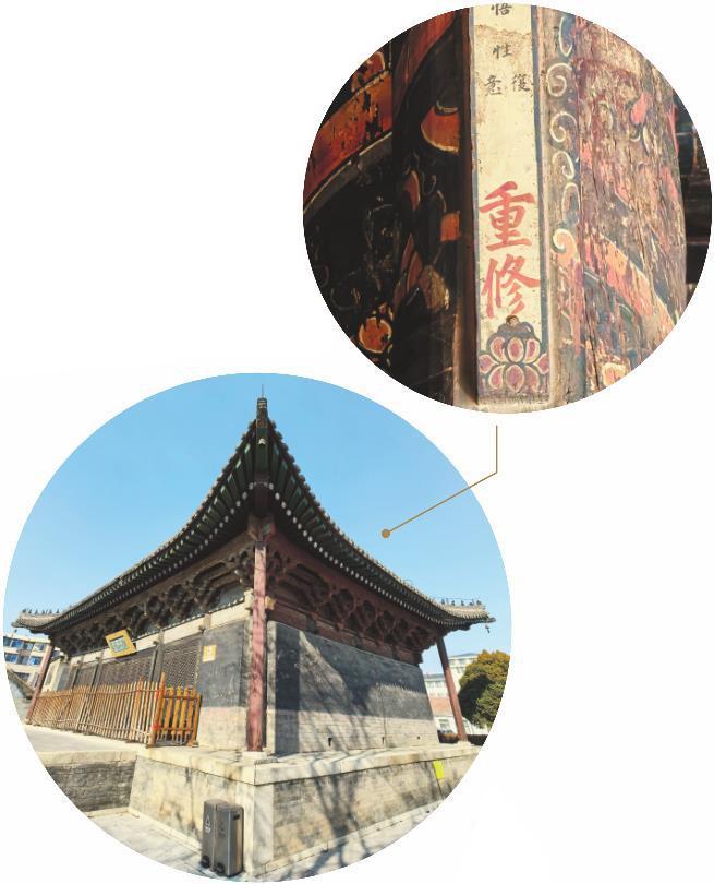 尤為難得的是,從明洪武年間修建開始,到各個時期進行修繕,匠人都用文字工整地記錄下來,寫在內梁上,這成為玄貞觀建筑彩繪的一大亮點。