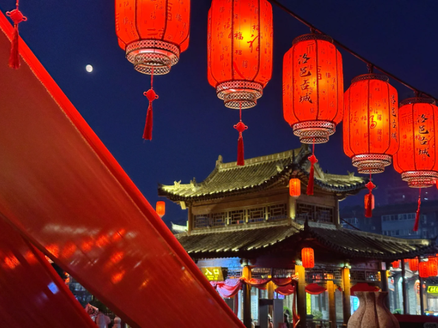 夜色幻境:當古城點亮千年星河 入夜后,沉浸感達到巔峰。數百盞仿古魚燈沿河道次第亮起,身著各朝代服飾的“居民”開始在街市活躍:酒肆里李白舉杯邀月,醫館前孫思邈辨識藥材,你甚至可能“偶遇”狄仁杰在城樓偵查虛擬案件。登上南城墻俯瞰,現代霓虹被巧妙隱去,唯有月光與燈籠交映,讓人恍惚間疑心是否真的闖入了某個平行時空的洛陽城。