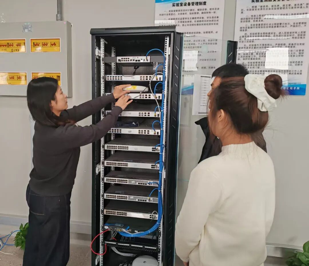實(shí)驗(yàn)主管樊利敏在檢查實(shí)驗(yàn)室機(jī)柜設(shè)備