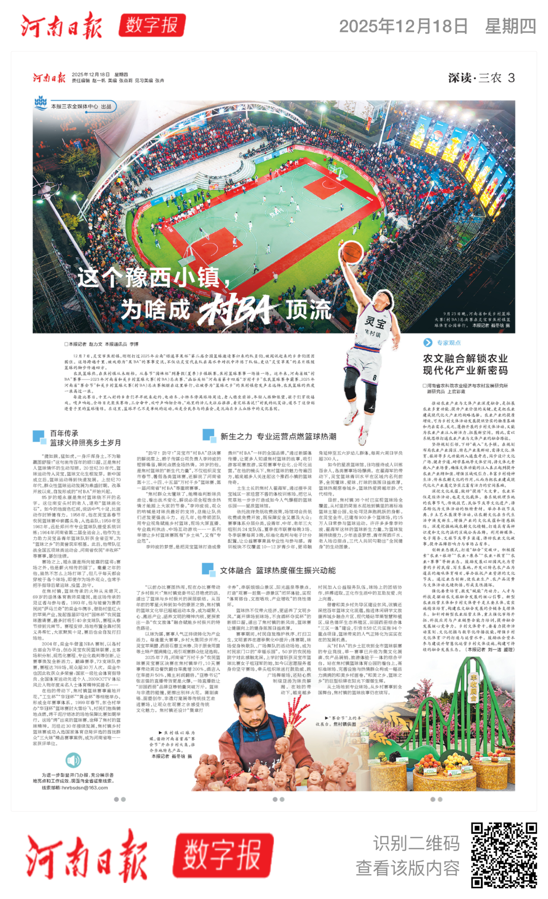 目前,焦村鎮38個村已實現籃球場全覆蓋,從村里的簡易水泥地到鎮里的高標準籃球主題公園,處處可見奔跑跳躍的身影。在靈寶全市,已建有900多個籃球場,約15萬人日常參與籃球運動。許許多多像李帥波、翟海軍這樣的籃球新生力量,為籃球發展持續接力,少年追逐夢想、青年揮灑汗水、老人場邊指點,三代人共同勾勒出“全民健身”的生動圖景。