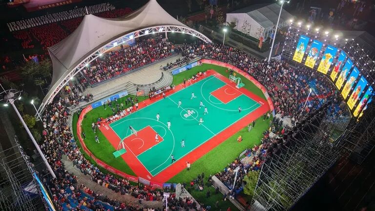 2025年7月,河南省“萬村千鄉”農民籃球賽靈寶賽區決賽在焦村鎮舉行,10天賽事帶動周邊餐飲翻臺率激增200%,酒店入住率提升50%,攤主利潤翻倍。“豆糝書記”張志強的直播帶貨更是火爆,一場直播就讓“田園西冊”品牌豆糝銷量突破萬斤。籃球與非遺的碰撞,更擦出別樣火花。蒲劇演唱、面塑創作、非遺燈籠展等傳統技藝走進賽場,讓觀眾在觀賽之余感受傳統文化魅力。焦村鎮還設計“集章打卡券”,串聯娘娘山景區、陽光溫泉等景點,打造“觀賽—趕集—游景區”閉環體驗,實現“體育搭臺、文旅唱戲、產業增收”的良性循環。
