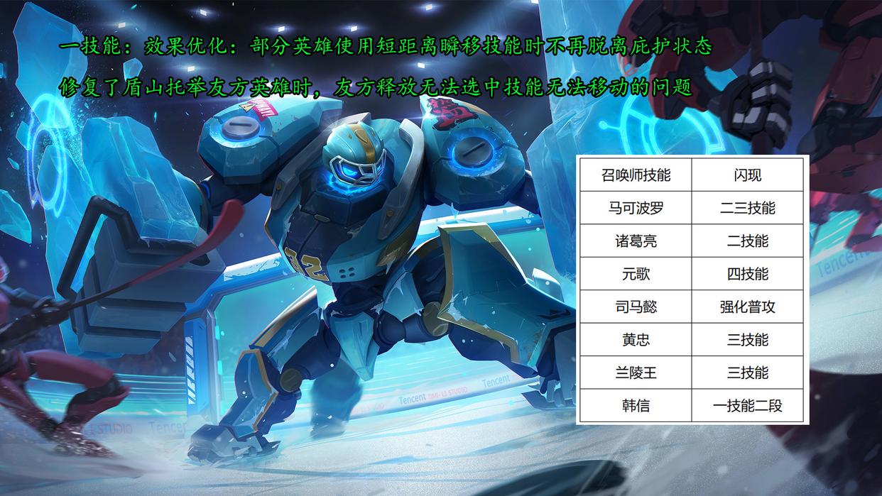 不過也有好消息,但不是對盾山,而是對盾山托舉的隊友,就比如一直被詬病的馬可波羅的23技能,或者韓信的12技能,同時盾山托舉隊友時,友方釋放無法選中技能時無法移動的bug也在此次體驗服被修復。
